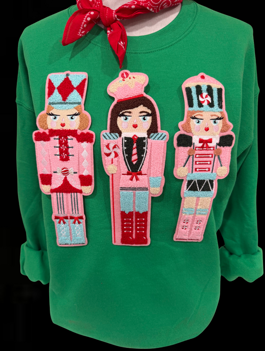 Sequin Nutcrackers Patch on Red Sweatshirt