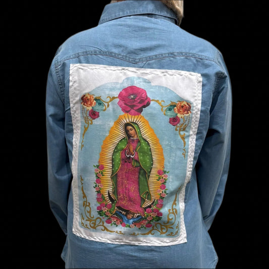 Lady of Guadalupe Patch on Denim Pearl Snap