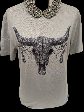 Rhinestone Skull on Silver Crew