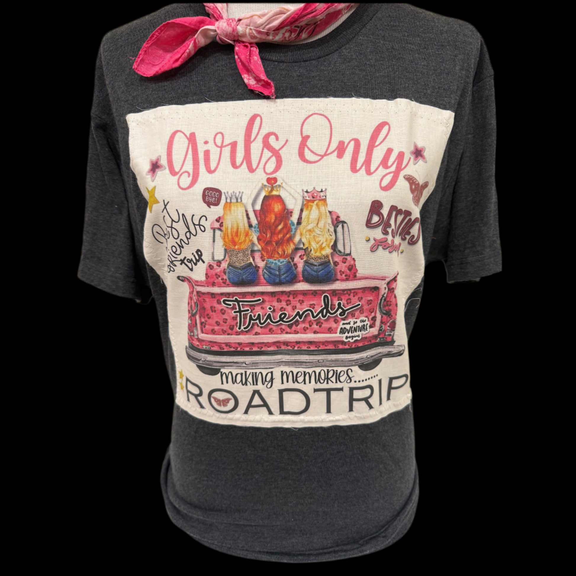 Hit the road in style — this crew features a playful *Girls Only Roadtrip* patch, perfect for spontaneous adventures and unforgettable memories with your besties.