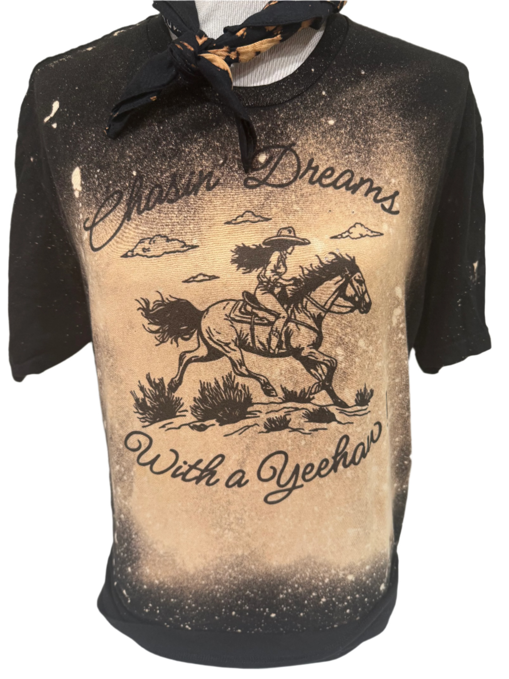 Chasing Dreams with a Yeehaw on Sports Bleached Black Crew