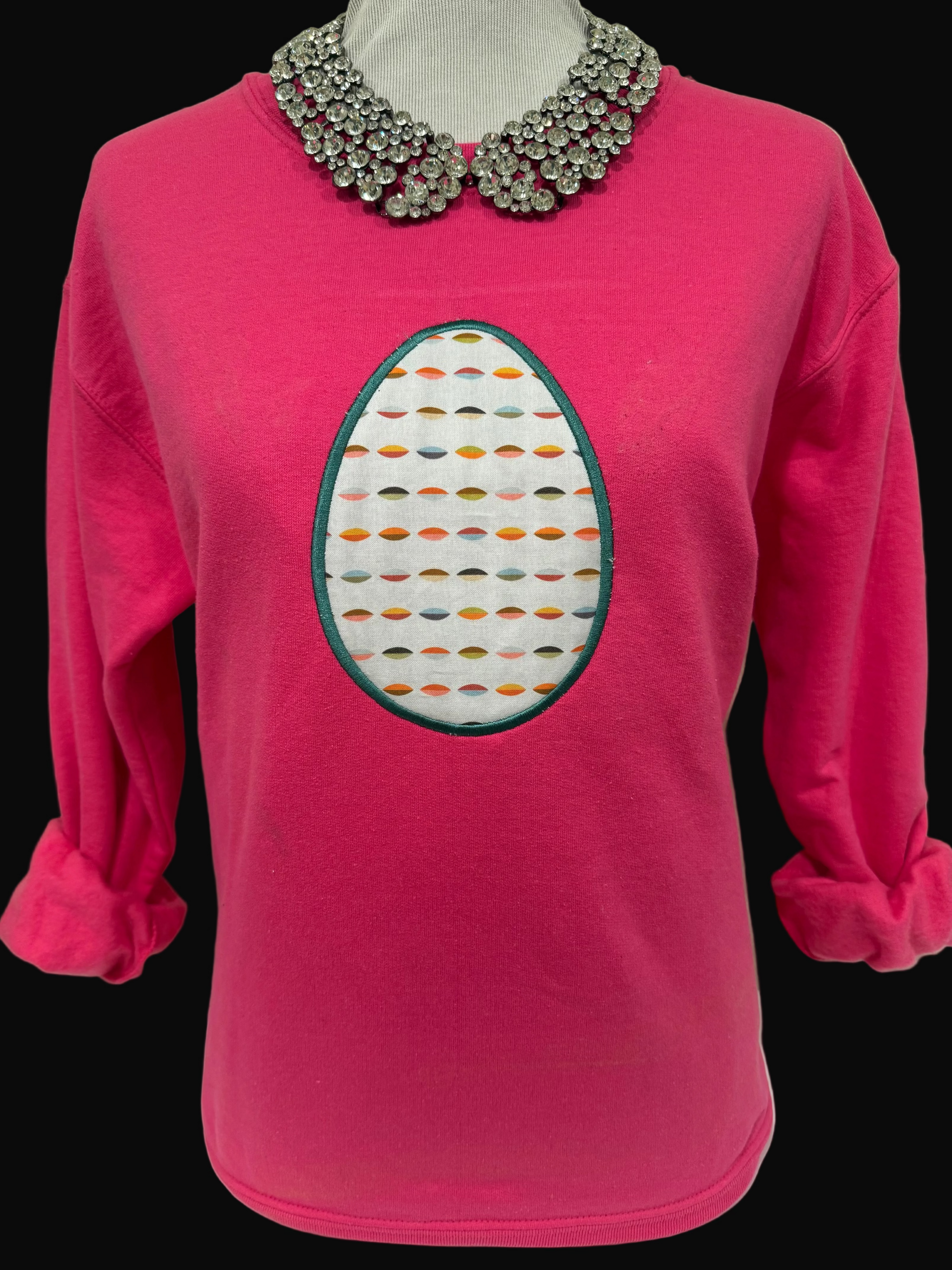Colorful Easter Egg Applique on Heliconia Sweatshirt