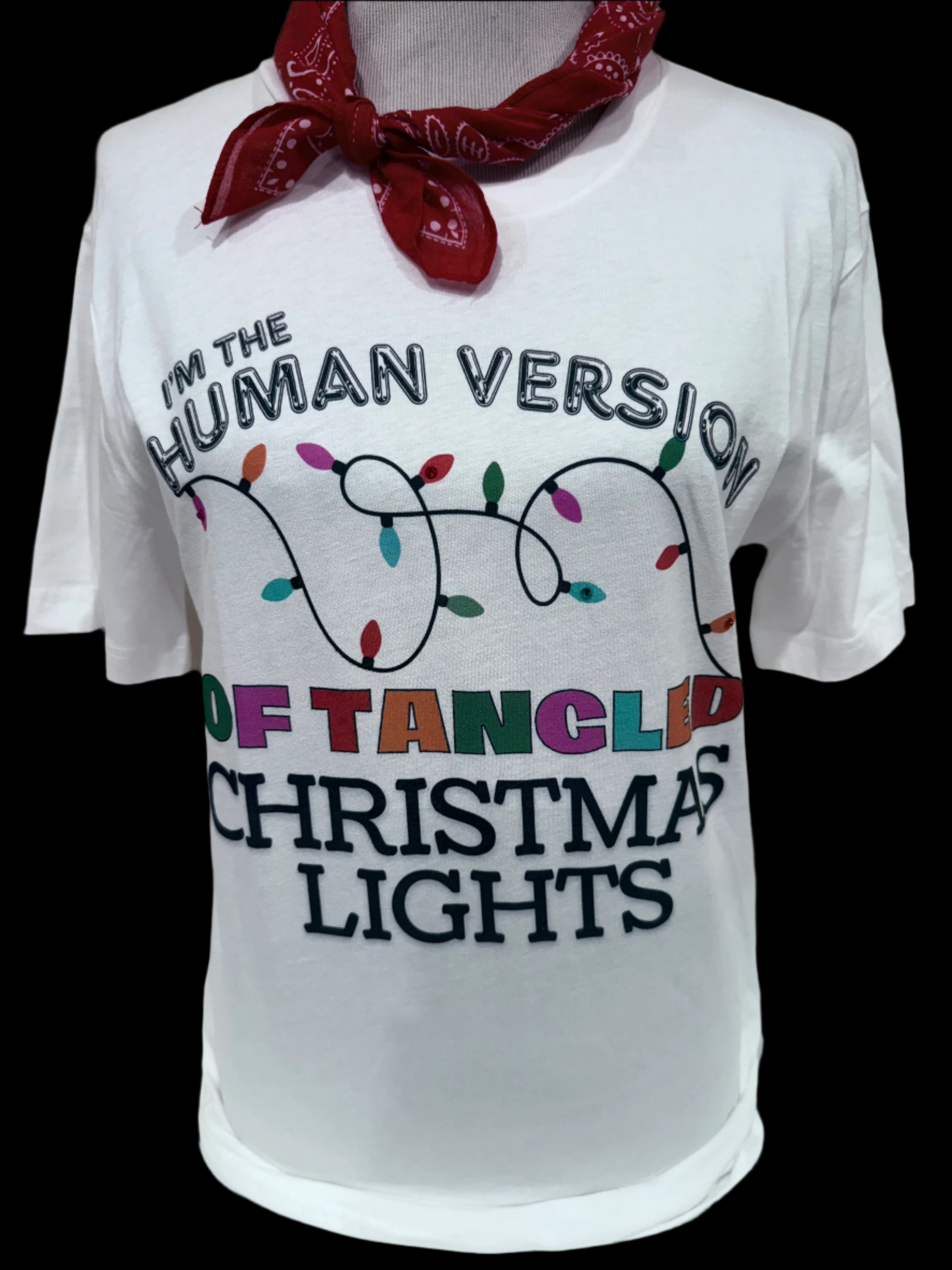 Embrace the chaos and charm of the season in our I’m the Human Version of Tangled Christmas Lights crew — perfectly messy, a little extra, and absolutely full of holiday spirit!