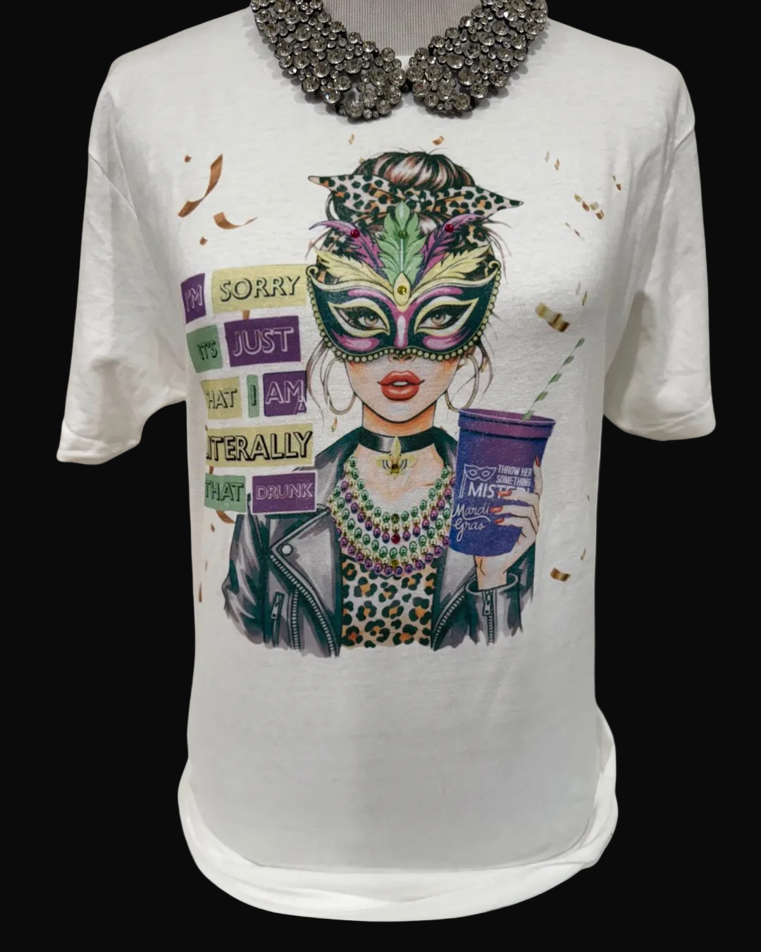 The Literally That Drunk Mardi Gras Tee brings the laughs with a bold, cheeky vibe made for parade days and late nights. Easygoing and fun, it’s the perfect tee for celebrating Mardi Gras with confidence and humor.