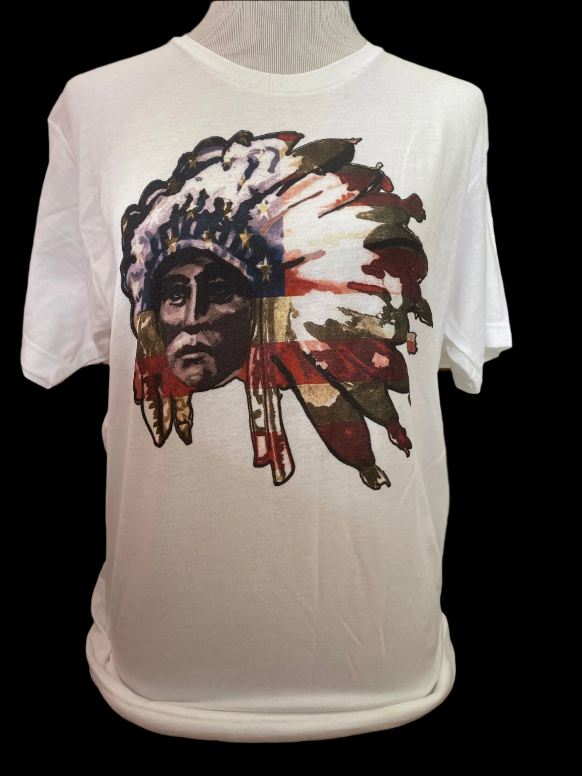 Celebrate the rich heritage and timeless spirit of Native American culture with the "RWB Indian" t-shirt.