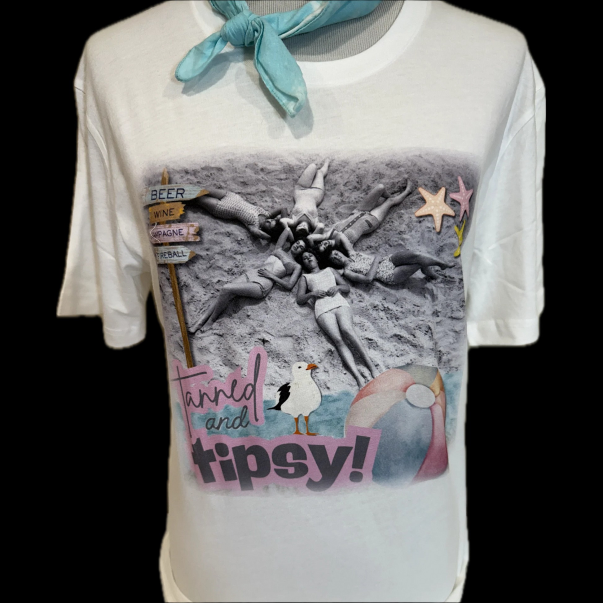Tanned and Tipsy on (White Crew OR Tan Tank)